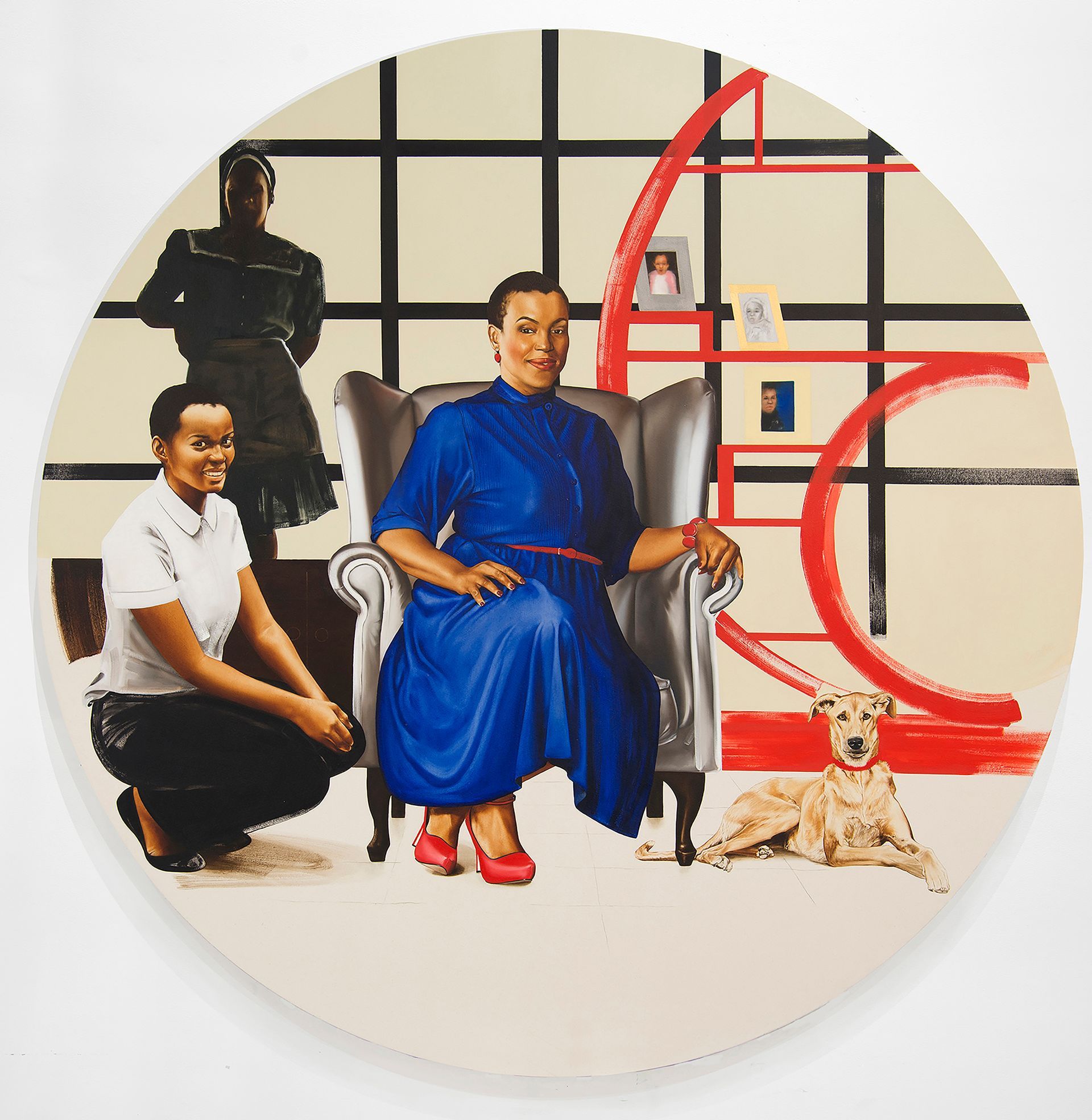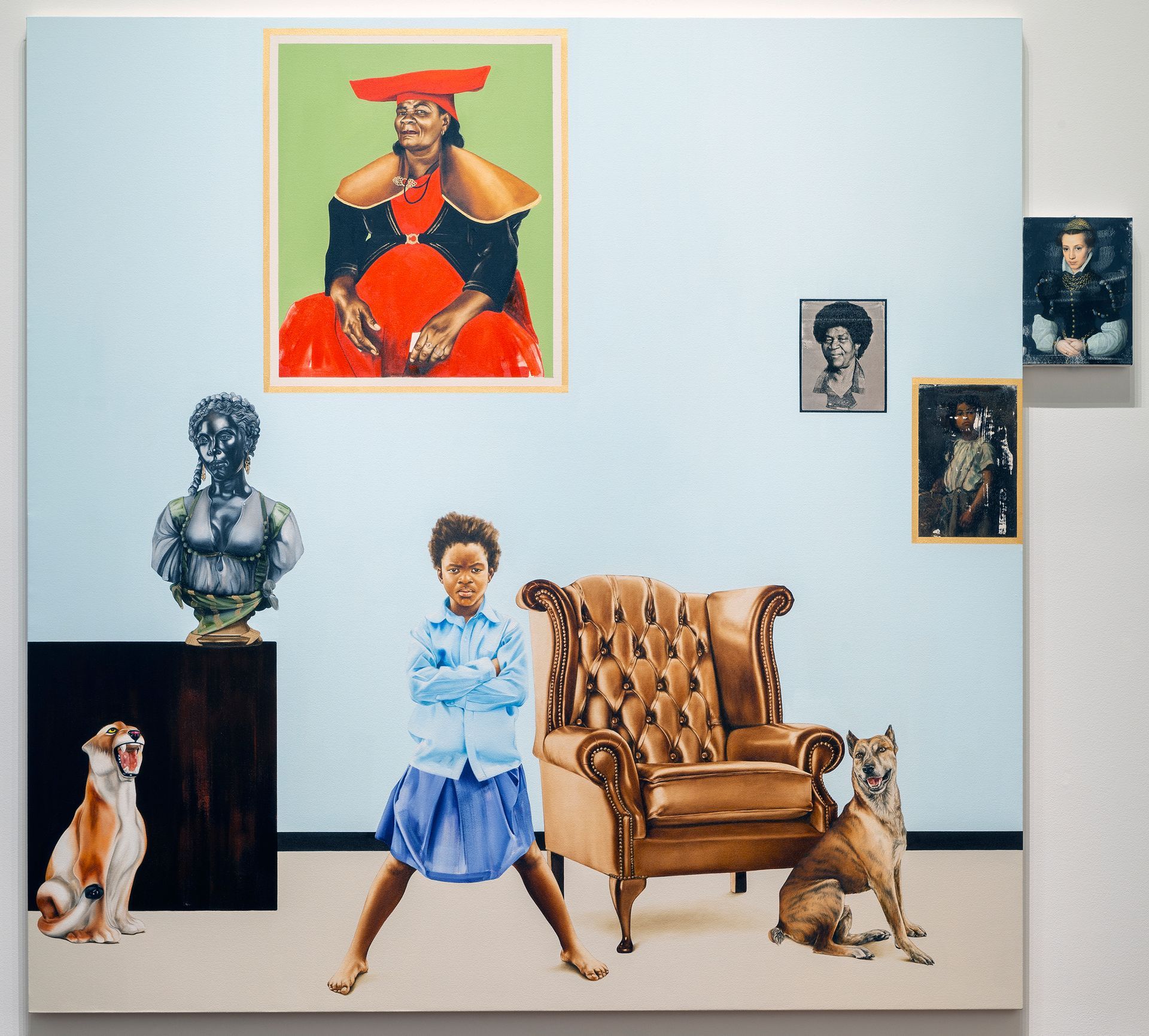 Democratic Intuition, an 8-chapter project of oil on canvas paintings and sculptures, examines the ways in which democracy is conceptualized and practiced within the life worlds of subjects that occupy southern Africa. In dealing with this material, Mokgosi focuses on how democracy can be thought of as something that is inscribed within the individual from various institutions; i.e. as Gayatri Spivak argues, the intuitions of democracy reside in state apparatuses.
